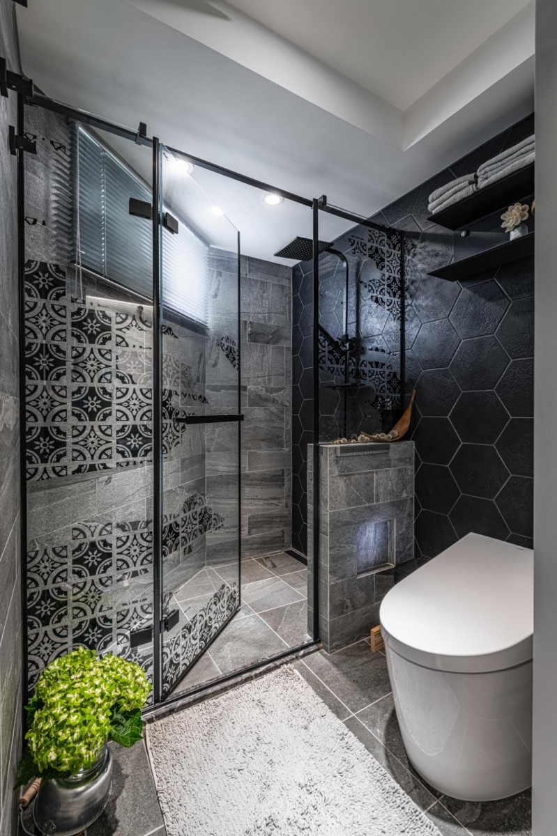 In the master bedroom, the recessed color palette lends a peaceful and relaxing atmosphere. The half-height wooden bedside wall provides a platform, and LED lamps are embedded inside to offer flexible functions. The gray color of Morandi is painted on the cabinet doors. The closet doors are geometrically shaped to the beauty of layers.